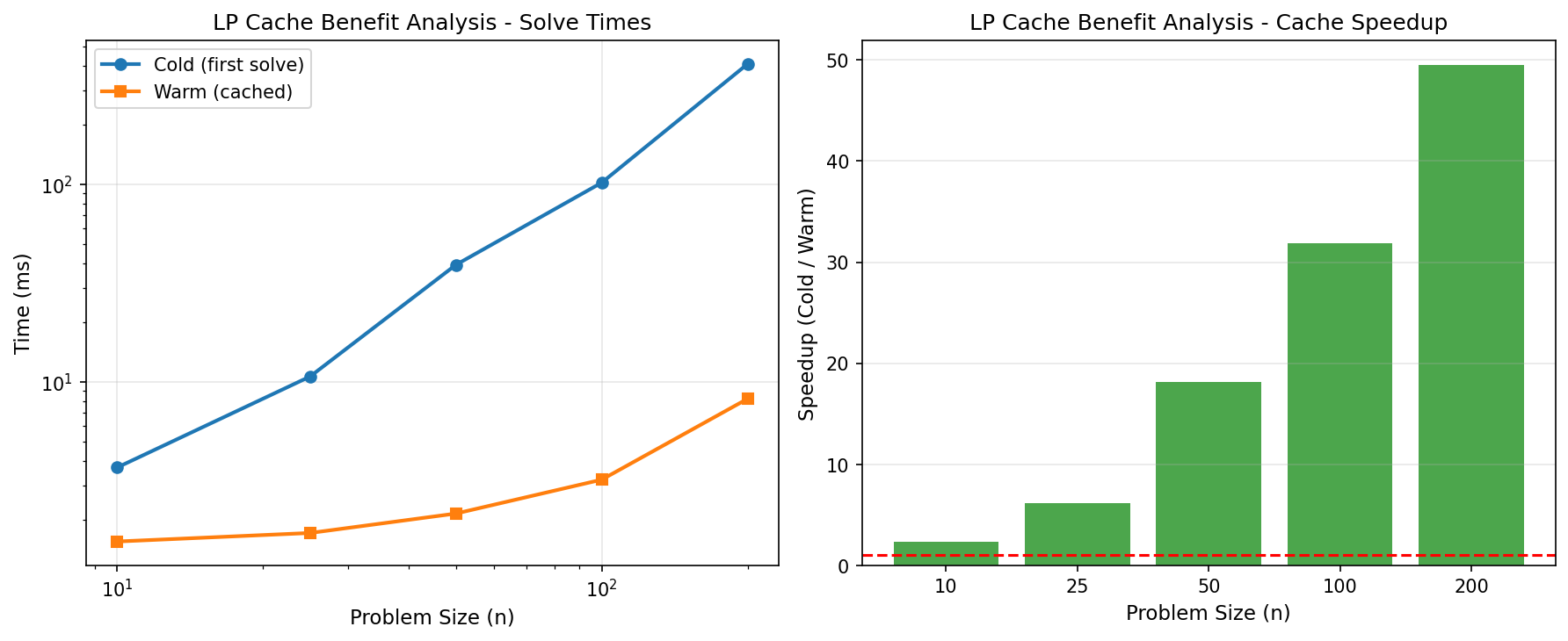 | LP warm overhead | < 1.5x vs SciPy | ✅ ~1.0x |